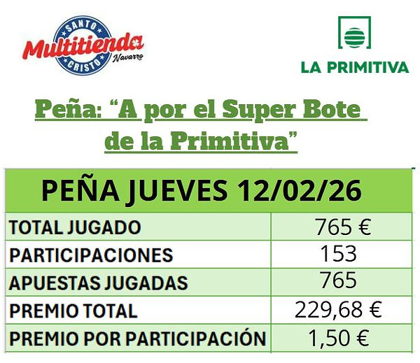 APUESTAS PRITIVA LUNES 16/03/26 PEÑA CERRADA.
